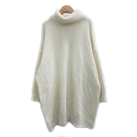 【中古】ローリーズファーム LOWRYS FARM ニット セーター 長袖 ロング丈 タートルネック M ベージュ レディース