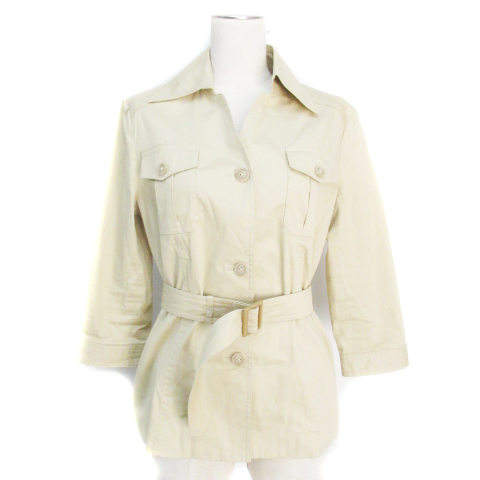 【中古】エルプラネット ミリタリージャケット ミドル丈 七分袖 スキッパーカラー 40 ベージュ レディース