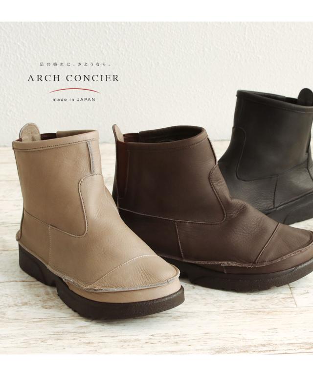 サイドゴアブーツ レディース 本革 疲れない 軽量 歩きやすい ショートブーツ 履きやすい 日本製 厚底 ウェッジソール チェルシーブーツ ローヒール 痛くない 軽い 天然皮革 シンプル 婦人 ブーツ arch concier アーチコンシェル 黒 ブラック チョコ ブラウン オーク d-501