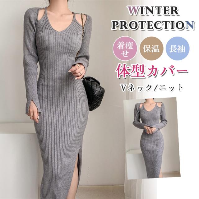 秋冬新作 ニットワンピース 秋冬服 ニット レディース ワンピース 体型カバー 大人 可愛い カジュアル 着痩せ ロング 長袖 ニット 無地