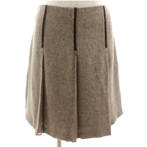 【中古】トッカ TOCCA スカート フレア ひざ丈 切替え 起毛 日本製 モヘヤ混 総柄 ブラウン 茶 ホワイト 白 2