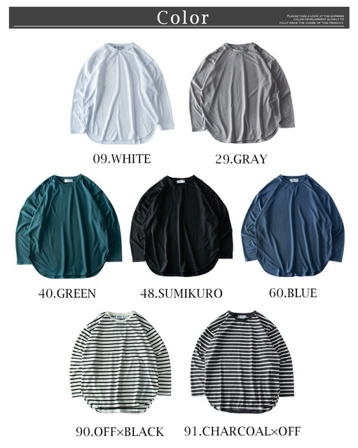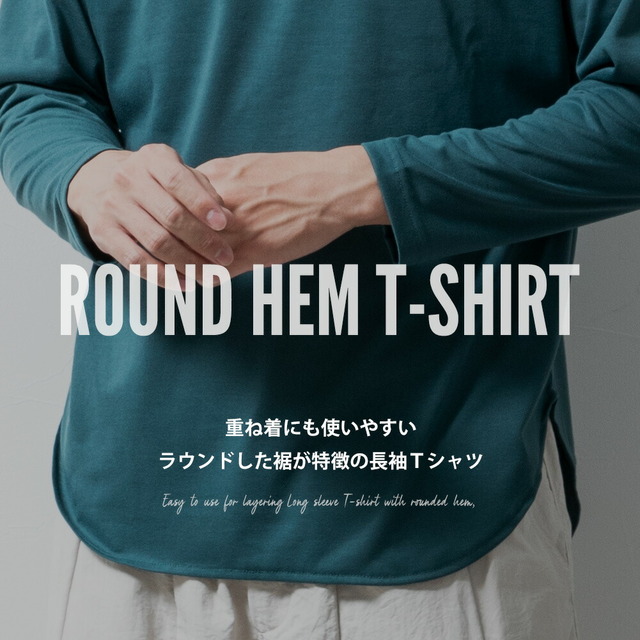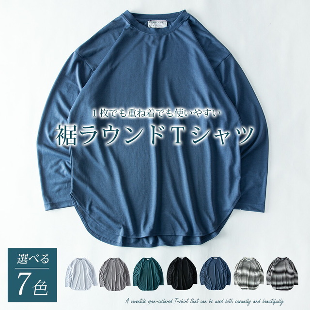 tシャツ メンズ 長袖 ラウンド裾 クルーネック 長袖tシャツ 重ね着 インナー 秋冬 トップス 無地 シンプル ボーダー 全7色 2478-2490 白 黒 ブルー M L LL XL 大きいサイズ メンズファッション