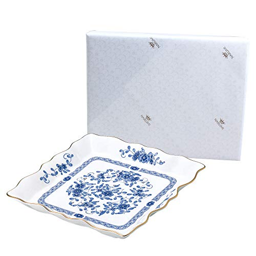◆商品名:NARUMI(ナルミ) プレート 皿 ミラノ 径23cm ブルー 花柄 梅の花 更紗調 フレアー 結婚祝い 敬老の日 プレゼント 日本製 ギフトボックス付<br>【NARUMIオリジナル包装済】
