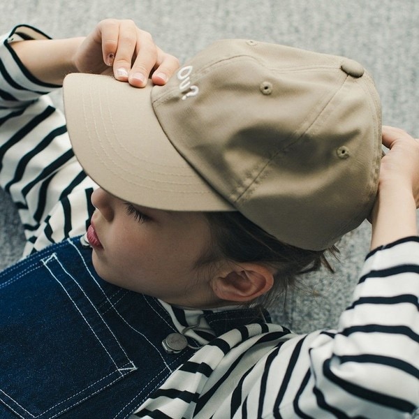 Ou?のロゴがかわいい刺繍キャップ。