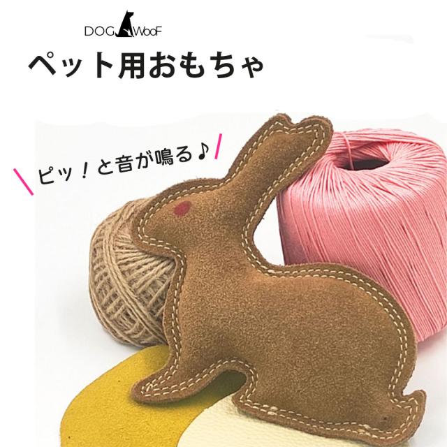 音が鳴るおもちゃ 犬 牛革 スエード生地 噛みに強い 二重縫製 本革 噛みおもちゃ ウサギ型