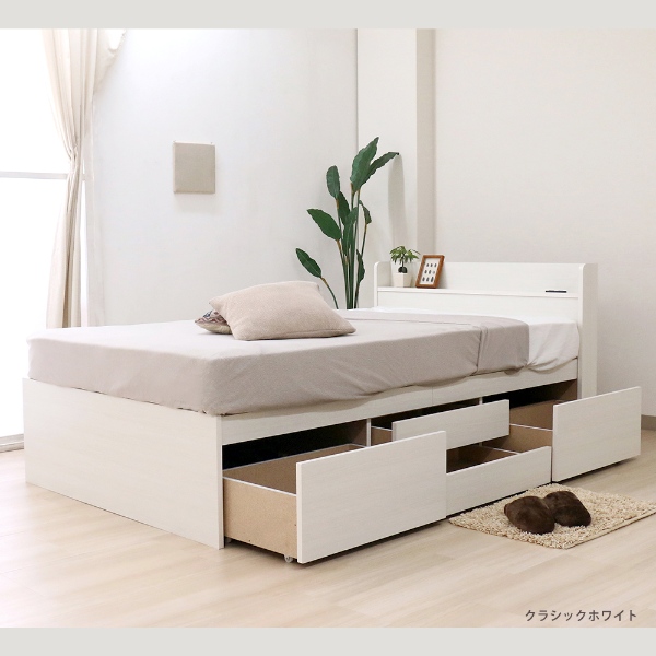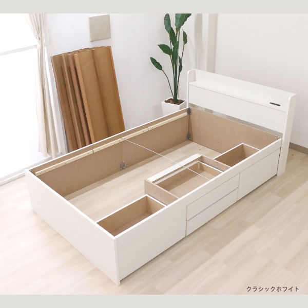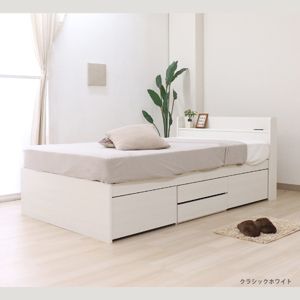 棚付チェストベッド 日本製 おしゃれ クラシックホワイト セミダブル マットレス付き