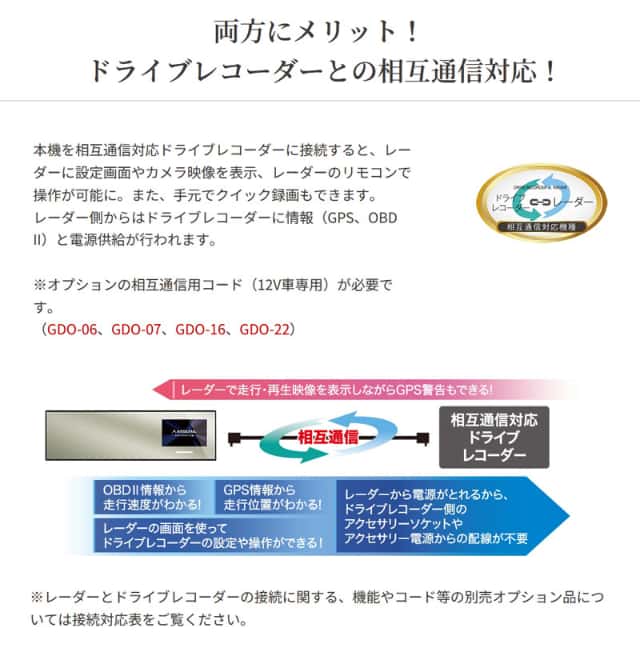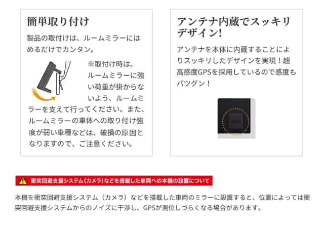 - 無線LAN搭載!ミラー型のGPSレーダー探知機。