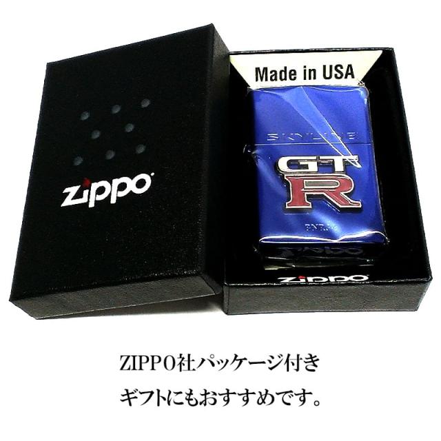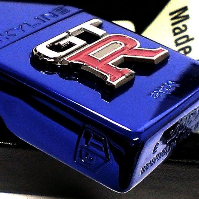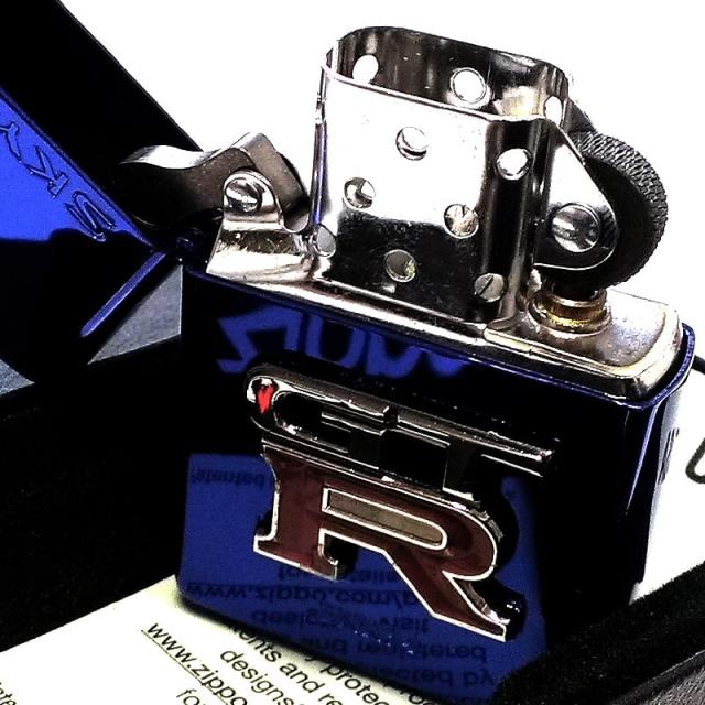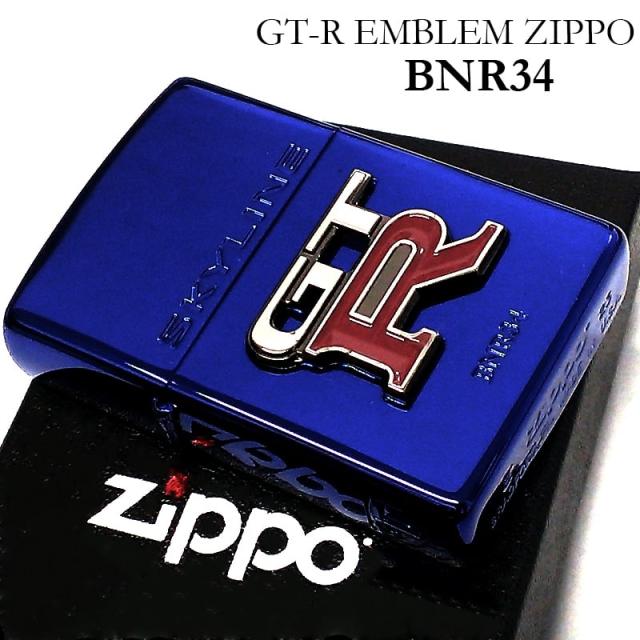 ZIPPO ライター スカイライン GT-R R34 リアルエンブレム 車 イオンブルー ロゴ メタル ジッポ 日産公認モデル GTR-BNR34 かっこいい 青 おしゃれ メンズ ギフト プレゼント