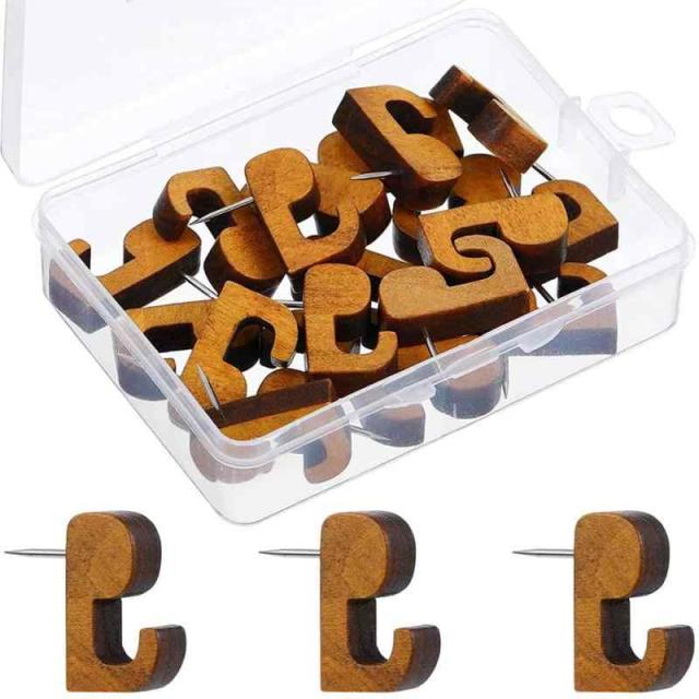 画鋲 壁掛け フック 20個セット 画びょう プッシュピン 固定用釘フック jフック 木製 おしゃれ 飾り用 コルク ボード/お風呂/キッチン/浴室/オフィス に適しています(コーヒー色)