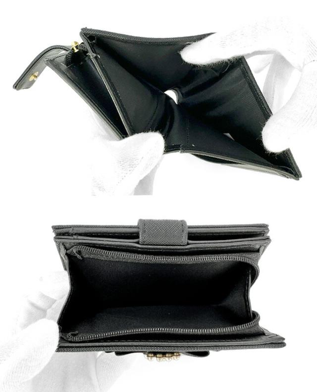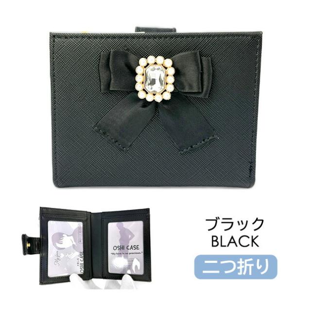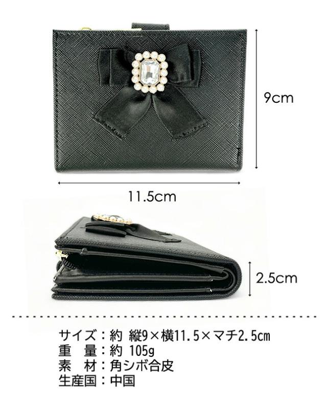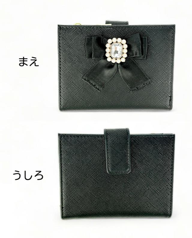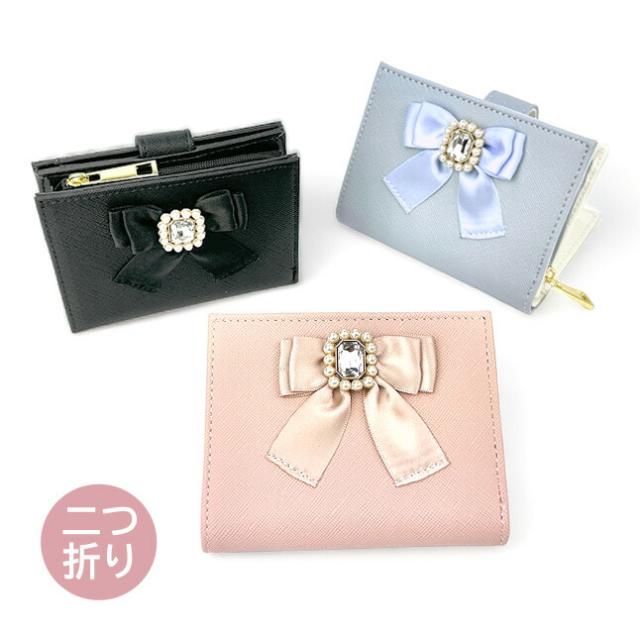 ビジューブローチ付きのサテンリボンが可愛い二つ折り財布。