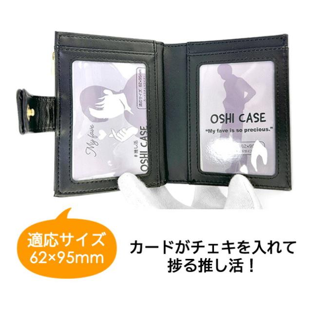 2ヶ所の透明ポケットにはカートやチェキを収納することができ、推し活におすすめ。
