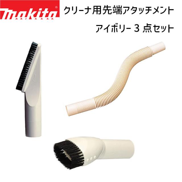 [マキタ 正規店] A-37552 A-37471 A-37568 クリーナ用 先端アタッチメント 3点セット 棚ブラシ ラウンドブラシ フレキシブルホース アイボリー makita 掃除機 CL100D CL102D CL072D CL105D CL105DWN CL116D クリーナー ノズル