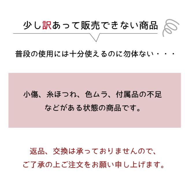 | 特徴 | ■普段のご使用には問題ない程度のちょっと訳あり品■総額 5,000〜7,000相当の商品■3点セットで2,980円(税込み)送料無料少し訳あって販売できない商品・・・普段の使用には十分使えるのに勿体ない・・・小傷、糸ほつれ、色ムラ、付属品の不足などがある状態の商品です。※返品、交換は承っておりませんので、ご了承の上ご注文をお願い申し上げます。【セット内容】●バッグ1点PUバッグ、スマホポーチ、本革バッグetc...●お財布or革小物 1点牛革財布、パイソン財布、オーストリッチ財布、キーリング、etc...●マフラー1点フェイクファーマフラー、リアルファーマフラー,etc...※上記画像の商品以外のものが届く場合もございます。商品をお選び頂く事はできません。何が届くかお楽しみにして頂けば幸いでございます。 |