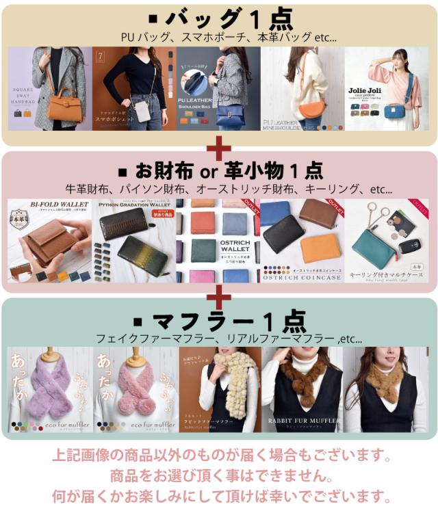 アウトレット 福袋 新春 2026年 レディース バッグ 財布 マフラー 3点セット 訳あり品 レディースセット ショルダーバッグ ハンドバッグ 長財布 本革財布 リアルファー マフラー ティペット 訳あり福袋 運試し お値打ち 女性 女子 婦人 人気 OUTLET 送料無料