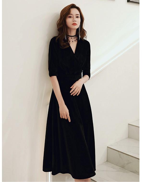 パーティードレス ミモレ丈 結婚式 ワンピース 結婚式ドレス 袖あり 母親 ドレス Vネック お呼ばれ ドレス 大きいサイズ 大人 上品 お呼ばれ 二次会 披露宴 黒 赤 小さいサイズ XXS XS S 大きいサイズ4L bs057s1s1l9