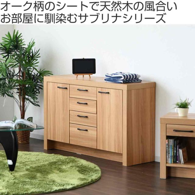 サイドボード オーク柄 ナチュラルデザイン 約幅120cm ( 棚 ラック リビングボード 収納 家具 完成品 食器棚 リビング 引き出し 可動棚 北欧 ナチュラル シンプル )