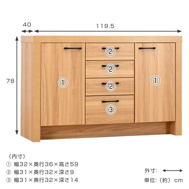 | サイズ | 約 幅119.5×奥行40×高さ78(cm) |