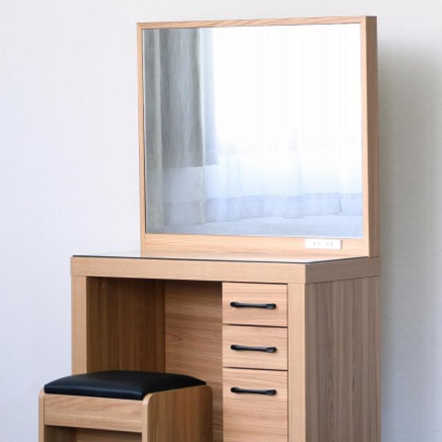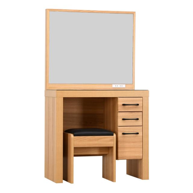 ドレッサー スツール付 オーク柄 ナチュラルデザイン 約幅76cm ( 奥行40cm 鏡台 コンパクト ミラー 鏡付き 引き出し 収納 コンセント 北欧 木目調 モダン スタイリッシュ シンプル )