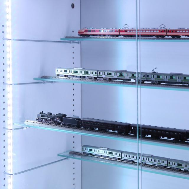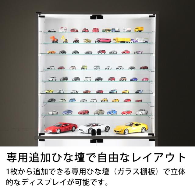 コレクター目線から考えられたプラスワンオプション。コレクションに合わせて追加できる専用のガラス棚ひな壇。立体的な多段ディスプレイでレイアウトフリーな奥行感を演出。
