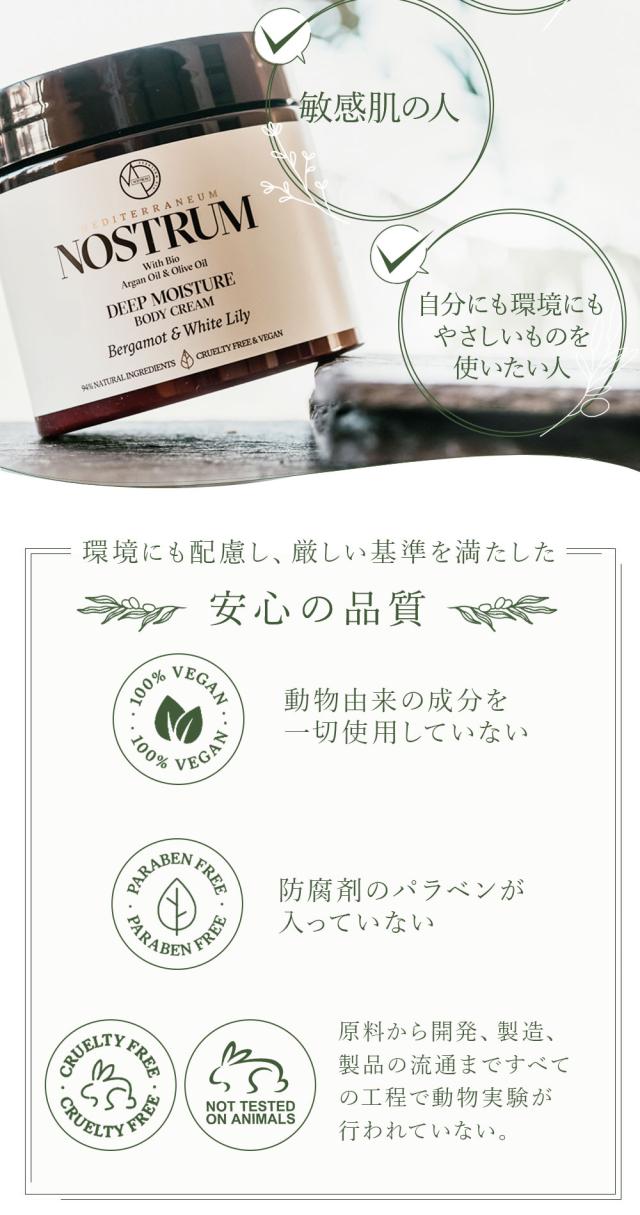 ヴィーガンにインスパイアされた肌にしっかりとうるおいを与えて整えるボディークリーム。サラッとした仕上がりでべベタつかない。心地よい香りが身体を包み込みます。