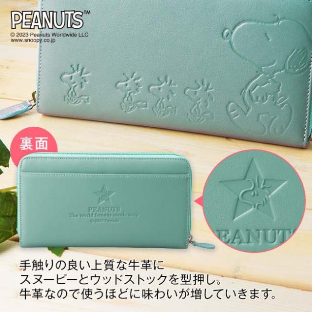 本商品は36枚カードが収納でき、スマホも入れられる多機能財布です。スヌーピーをウッドストックをふっくらと型押し。本牛革なので手にしっくりとなじみ、使うほどに味わいが増します。