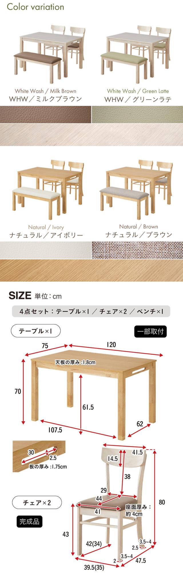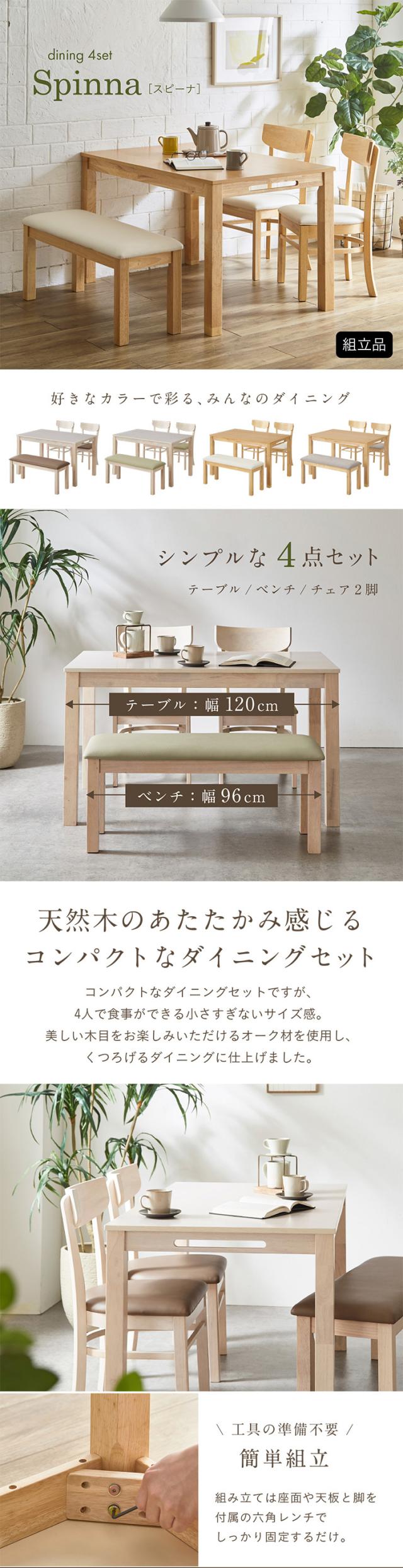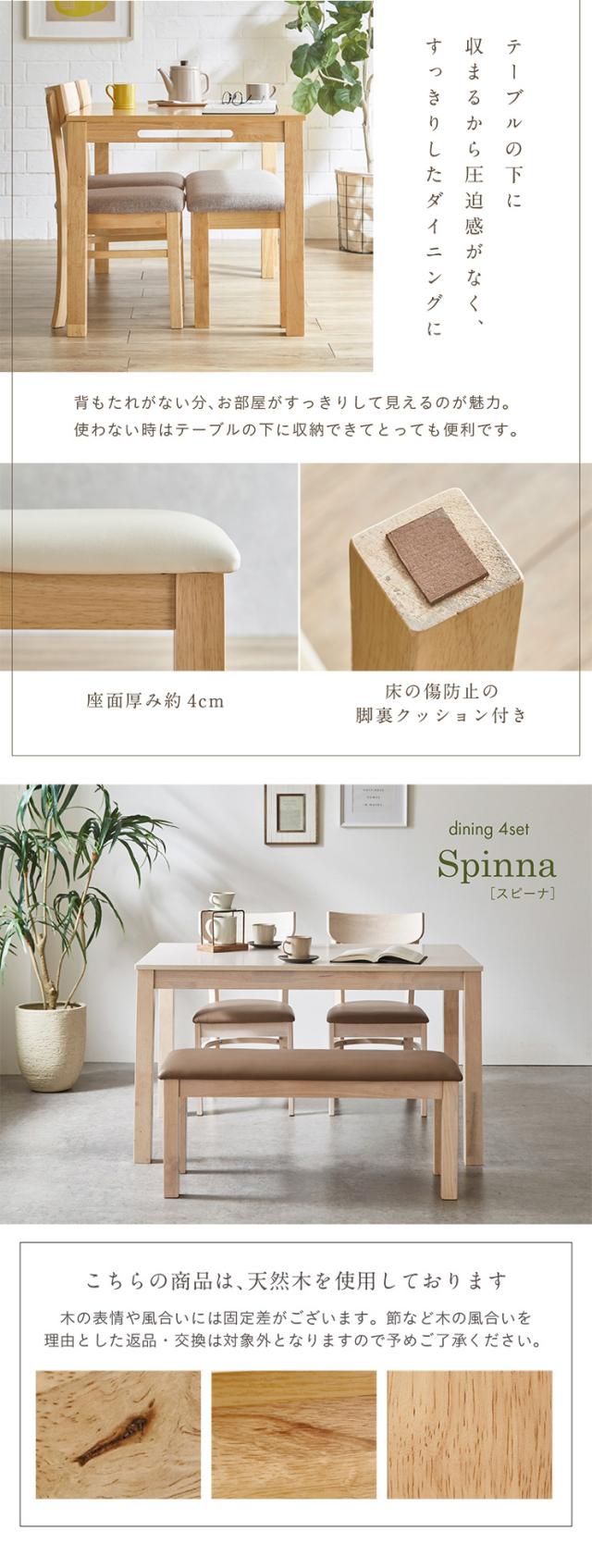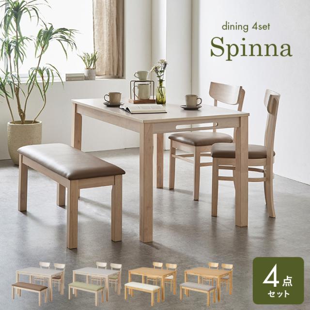 ダイニング4点セット 幅120cm Spinna(スピーナ) 4色対応 ダイニングセット ダイニングテーブルセット ダイニングテーブル ダイニングチェア ダイニングベンチ テーブル チェア ベンチ ナチュラル 木製 おしゃれ