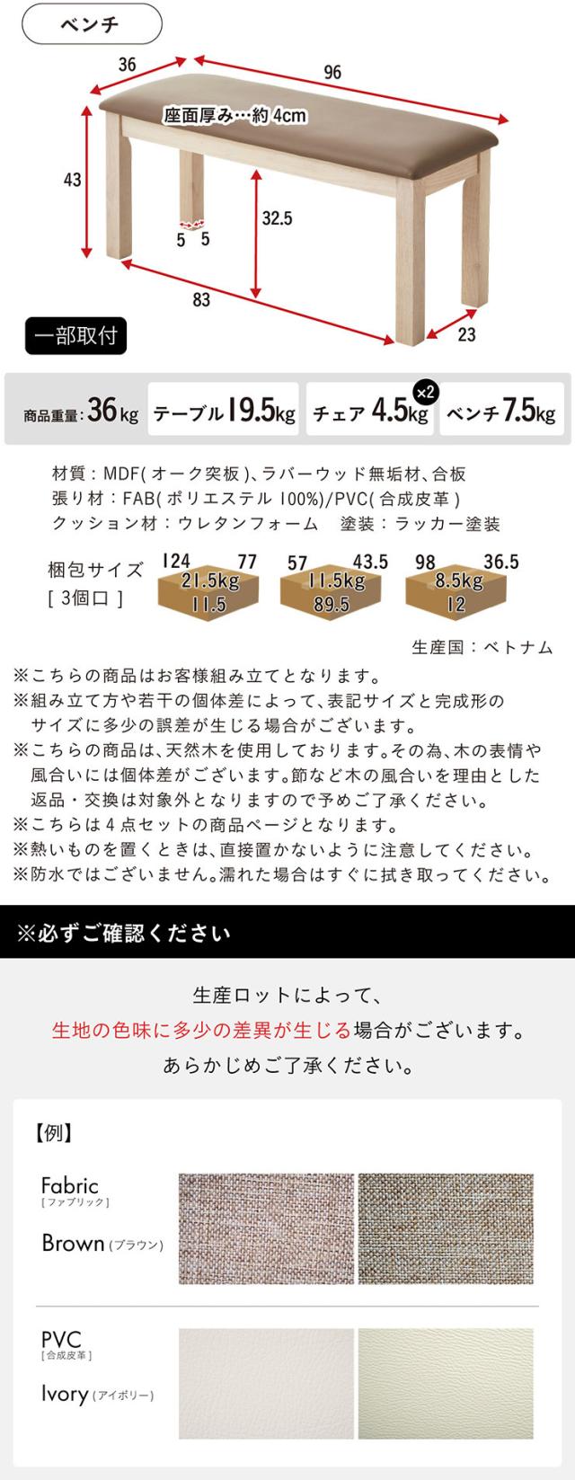 ベンチ:W96 x D36 x H43cm