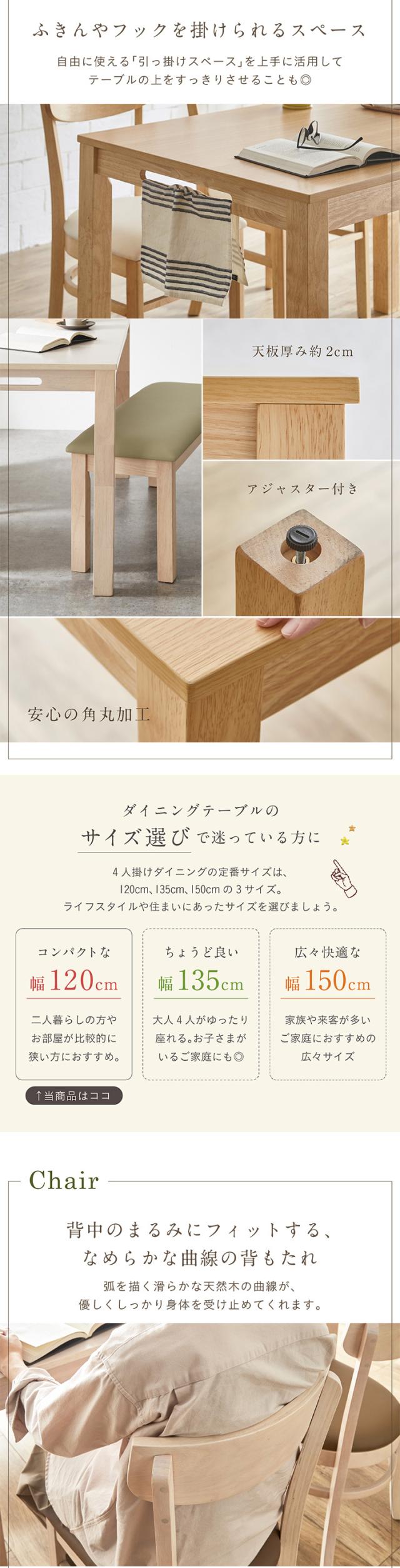 ダイニング4点セット 幅120cm Spinna(スピーナ) 4色対応 ダイニングセット ダイニングテーブルセット ダイニングテーブル ダイニングチェア ダイニングベンチ テーブル チェア ベンチ ナチュラル 木製 おしゃれ