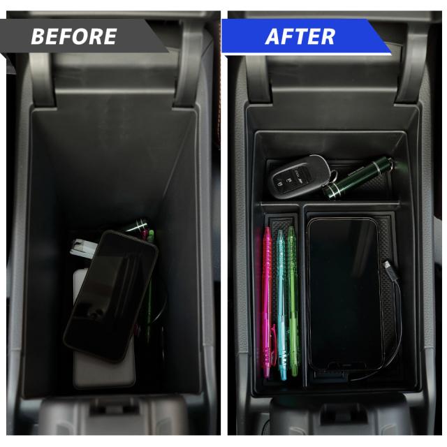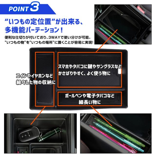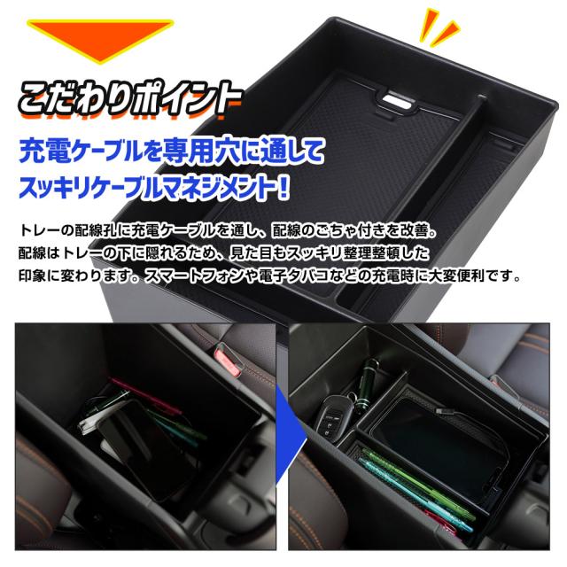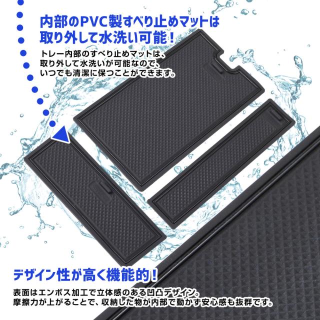 ホンダ ZR-Vのコンソールボックスにピッタリなデザイン設計で、 置くだけでスッキリ整理整頓できるコンソールボックストレーです! ホンダ ZR-Vの純正コンソールボックスは深くて仕切りもないため中の物が探しづらく、 走行中に中身がバラバラ、充電ケーブルが絡まりさらにストレス…なんていう事が。 そこで、スペースに合わせて快適スッキリ収納できる、 ホンダ ZR-V専用設計コンソールボックストレー! コンソールボックスにピッタリ収まる専用設計でフィット感は抜群! 走行中にカタカタと音がしないので、ストレスなくご使用いただけます。 トレーの深さは、収納しやすく中身を把握しやすい、使い勝手の良い6cmに設計。 純正コンソールボックスは深さが15cm以上あるので、上下に収納する事も可能に。 トレーを置いた後は、下段を目隠し収納として有効活用する事もできます。 また、トレーには充電ケーブルを通す専用穴を設けているので、配線のごちゃつきもスッキリ解決! 配線はトレーの下に隠れるため、見た目もスッキリ整理整頓された印象に。 トレーには、スマホやタバコ、鍵などのかさばりやすくよく使う物を置くスペース、 ボールペンや電子タバコなど長細い物を置くスペース、 細々としたものを置けるスペースの3箇所に仕切られており、"いつもの定位置"が出来上がります。 トレー本体はABS樹脂製のクールな艶消しブラックで車内にさりげない高級感をプラス。 トレー内部の滑り止めマットは水洗いが可能なので、いつでも清潔にしておくことができます。 |