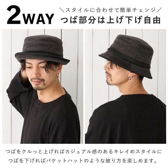 コーデュロイ素材 ポークパイハット 帽子 メンズ 秋冬 無地 大きいサイズ 60cm 57cm 暖かい カジュアル hat-1506 2way ハット つば 短い バケットハット 秋冬 レディース UV 日よけ 折り畳み お洒落 ギフト Xmas プレゼント