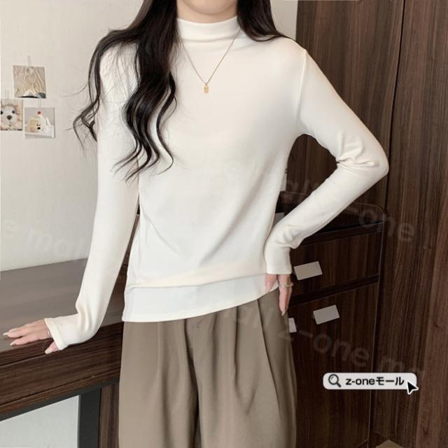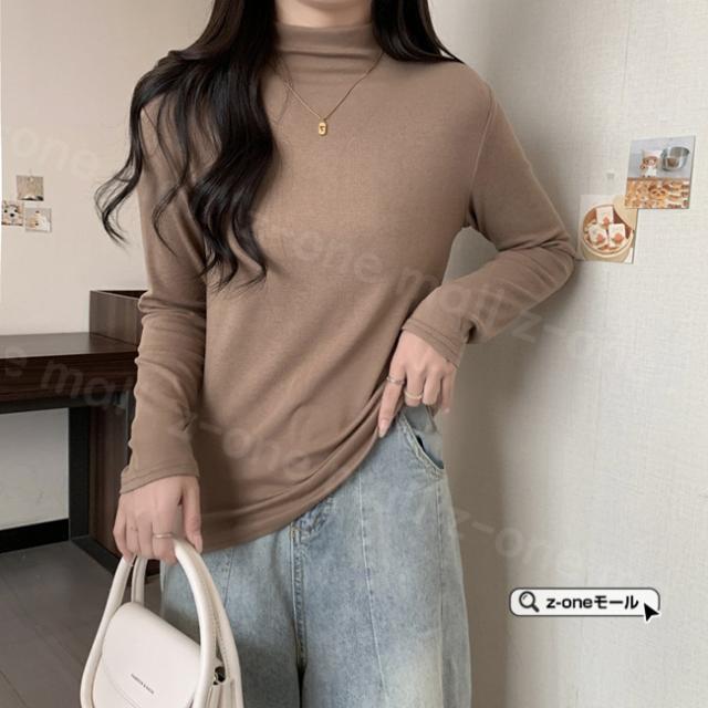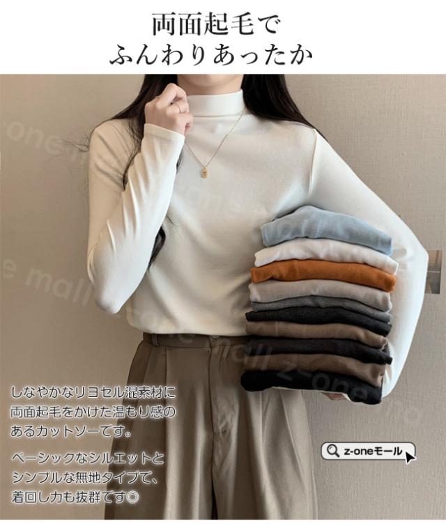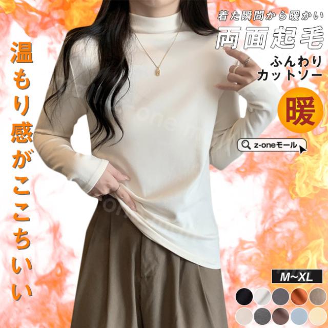 両面起毛 カットソー 裏起毛 ハイネック 春新作 送料無料 厚手 微起毛 肌着 WARM 発熱 ストレッチ レディース トップス Tシャツ 長袖 防寒インナー 無地 シンプル 入学式 入園式