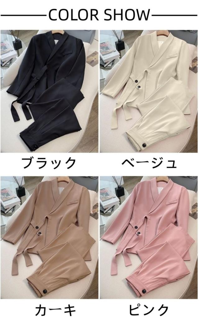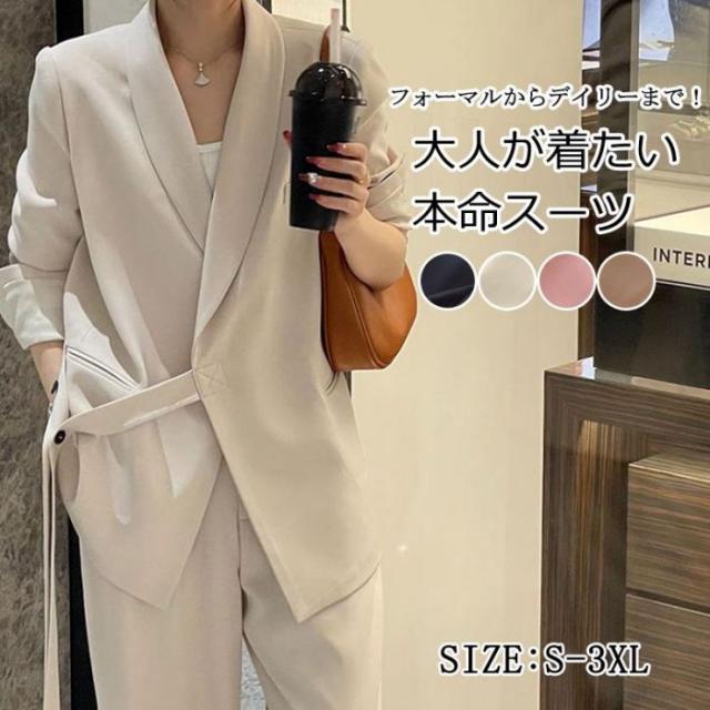パンツスーツ レディース 長袖 セットアップ 2点セット ジャケット パンツ 体型カバー 卒業式 入学式 春秋