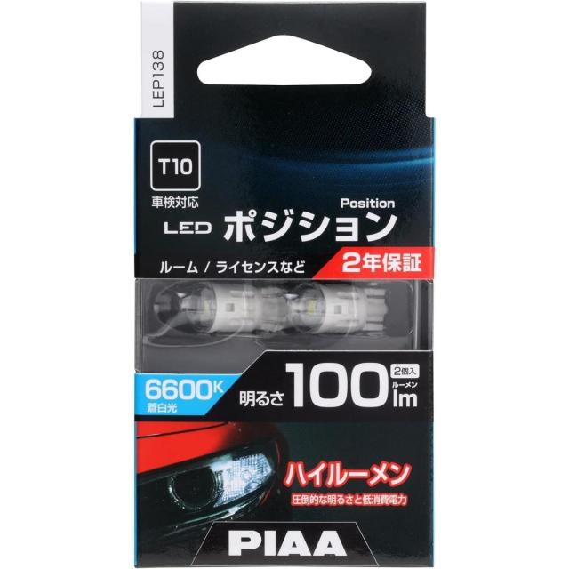PIAA ポジション LED バルブ 100lm 6600K 2個入 蒼白色 LEP138 車検対応 HV&EV車対応 ポジション用バルブ 12V 1.0W T10 ルーム ライセンス