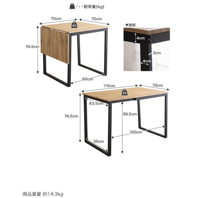 本体サイズ: 幅 70cm 〜 110cm × 奥行 70cm × 高さ 74.5cm商品重量: 14.3kg