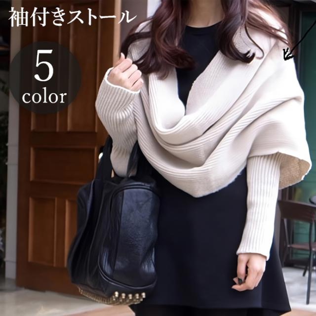 袖付きストール ショール マフラー ニット セーター風 カーディガン 羽織り リブ あったか 暖かい 防寒 おしゃれ かわいい