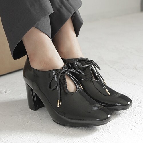 レースアップエナメルブーティー