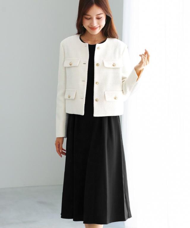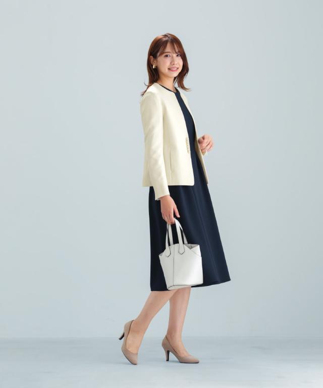 ジャケットとも好相性で、オフィスからフォーマル、
