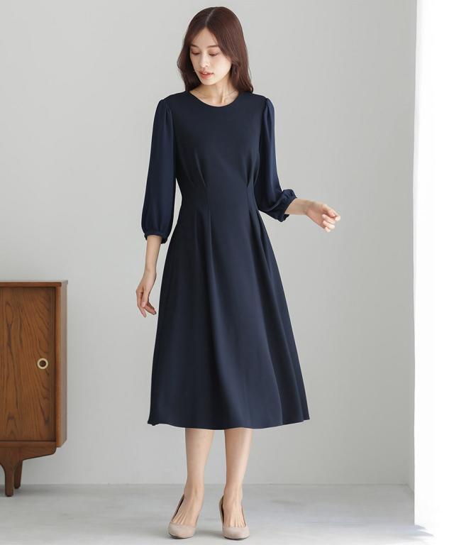 洗えて動けるワーママワンピ【手洗いできるハイストレッチジョーゼット】美フレアワンピース