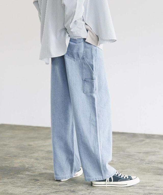 ワークスタイルのデザインを落とし込んだルーズペインターパンツ。太すぎないルーズめのシルエットでコーディネートに取り入れやすく、穿くだけでこなれ感をプラスしてくれます。サイドポケットやハンマーループ、大きめのバックポケットなど、ワーク感のあるデザインがアクセントに。馴染みの良い綿100%の10ozデニム/ツイル生地を使用しており、オールシーズンでの着用が可能です。日々のコーディネートに新鮮なアクセントを加えてくれるおすすめアイテムです。