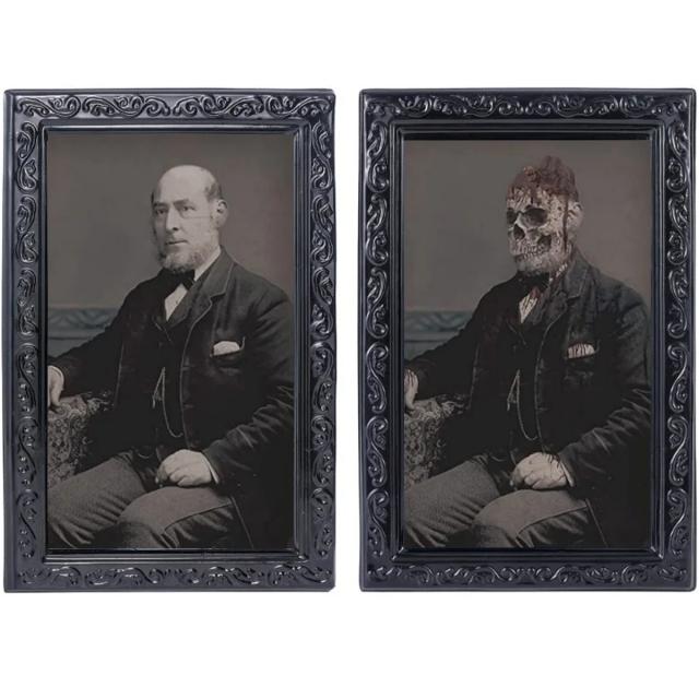 [3D ゴースト フォトフレーム 動く肖像画] 博士 変化 ウォールデコレーション ゾンビ ハロウィン お化け 幽霊 ゴースト 不気味 怖い 肝試し お化け屋敷 悪戯 壁紙 トイレ 洗面所 寝室 階段 お店 ショップ 文化祭 リビング イベント 写真 絵画 カラス 男性 初老の紳士