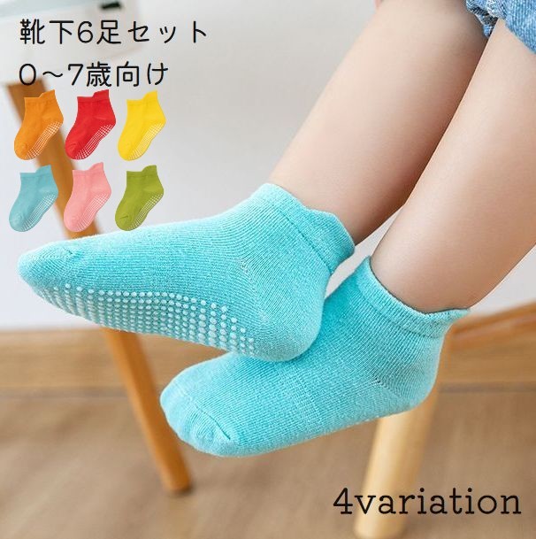 靴下 6足セット ショートソックス キッズ ベビー ジュニア 男の子 女の子 シンプル 滑り止め 普段使い お出かけ 通学 通園