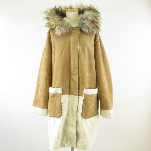 【中古】プライマーク PRIMARK フェイクムートンコート 長袖 フェイクファー ロング 茶 42 *T559 レディース