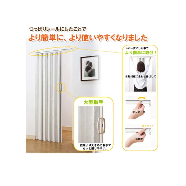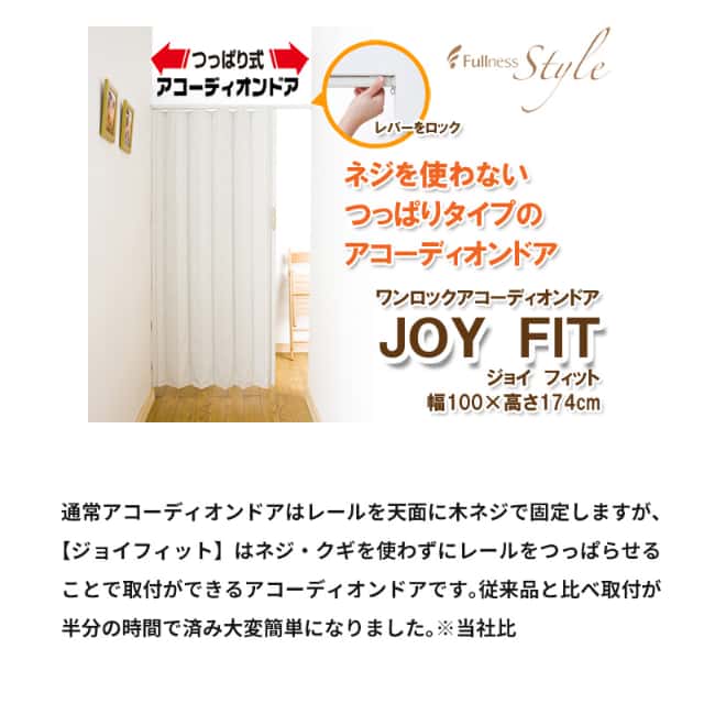 突っ張り式 アコーデオンドア ジョイフィット 100×174 大型取っ手 つっぱり ツッパリ 間仕切り 目隠 フルネス Fullness 代引不可