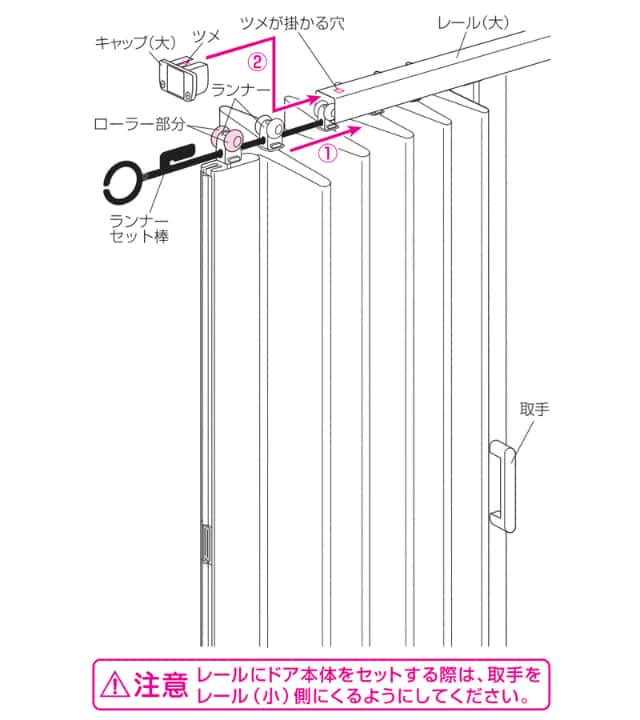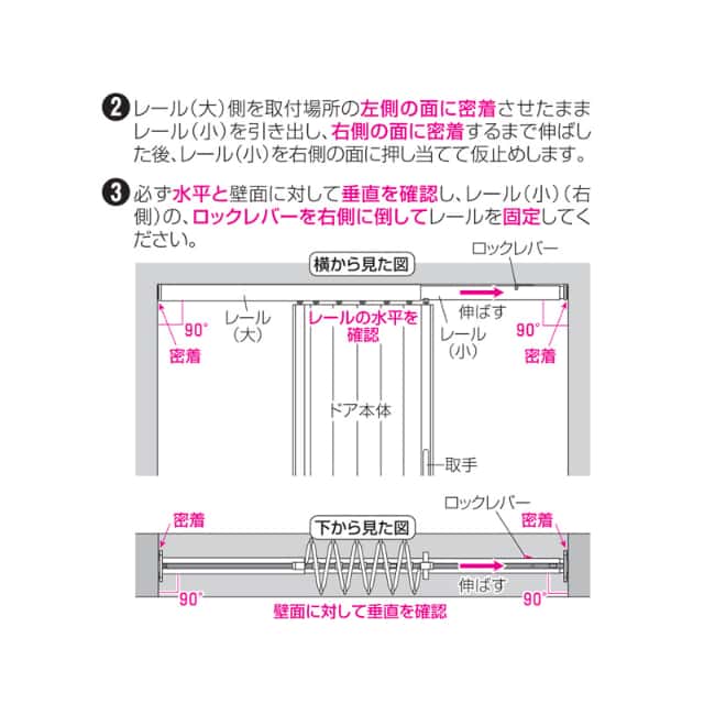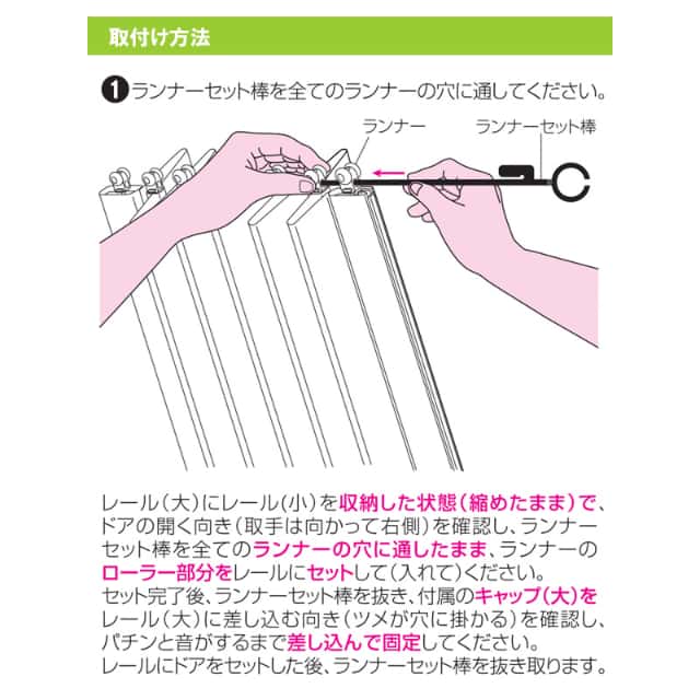壁を傷つけずに取り付けできるつっぱり式レールタイプのアコーデオンドア「ジョイフィット」
