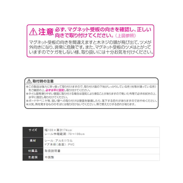 - 壁を傷つけずに取り付けできるつっぱり式レールタイプ使用。