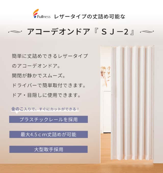 丈詰も簡単 アコーデオンドア「SJ-2」ファンデ 100×174 金のこ付き レザータイプ プラスチックレール採用 縦型 間仕切り 目隠 フルネス Fullness 代引不可