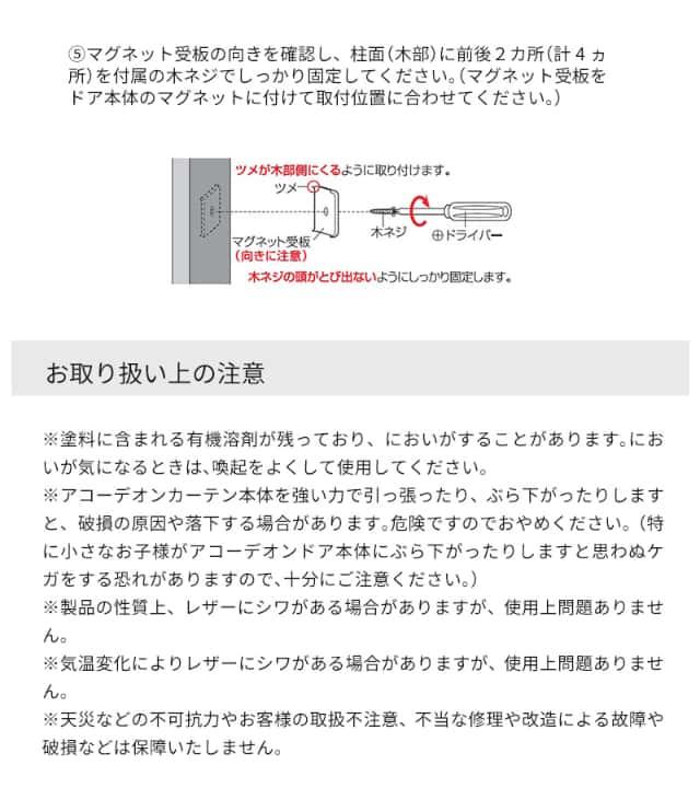 - レザータイプの丈詰め可能なアコーデオンドア。ドアや押入れ、襖代わりにも利用できます。
