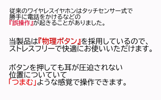 簡単つまみ操作で音楽/通話/音量調整が可能。