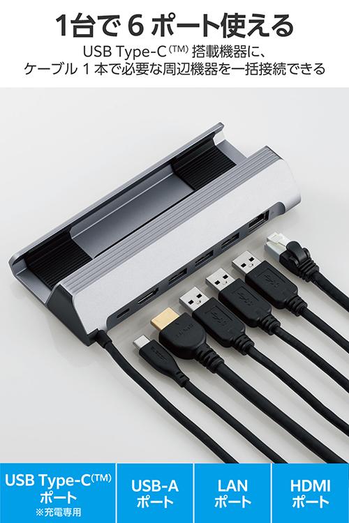 エレコム ドッキングステーション 6in1 Steam Deck スタンド Type-Cx1 USB-Ax3 HDMIx1 LANx1 ブラック┃DST-W04