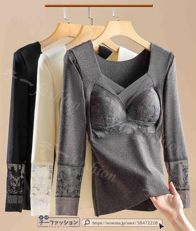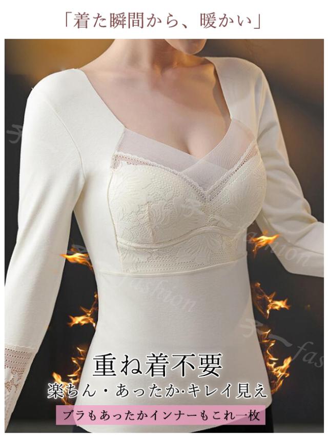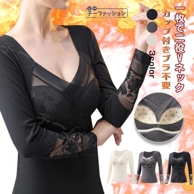 インナー レディース カップ付き 冬新作 裏起毛 長袖 あったかインナー Vネック 深開き 起毛 両面起毛 カップ付きインナー ヒート 蓄熱 保温 ノンワイヤー カップ付きカットソー 秋冬 防寒 肌着 女性 婦人 大人 秋服 バレンタイン